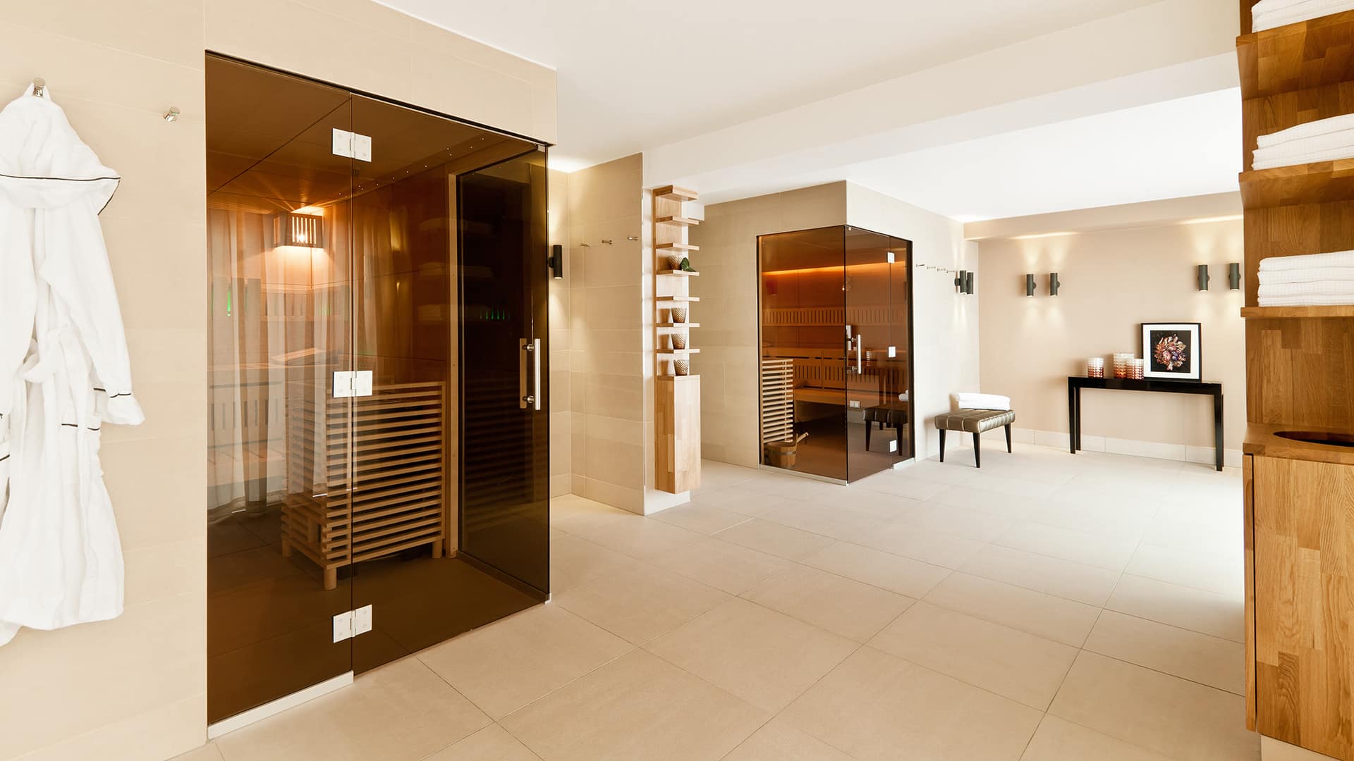 Eingang zur geräumige Sauna zum Entspannen im Wellnessbereich des Hotel-Restaurants Taufstein.